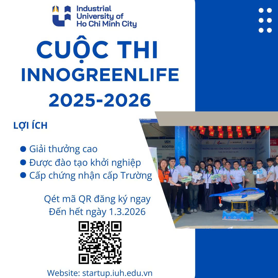 Cuộc thi Đổi mới sáng tạo Khởi nghiệp INNOGREENLIFE 2025–2026 được tổ chức nhằm thúc đẩy tinh thần khởi nghiệp xanh, đổi mới sáng tạo và phát triển bền vững trong cộng đồng. Ban Tổ chức hướng dẫn quy trình đăng ký tham gia như...